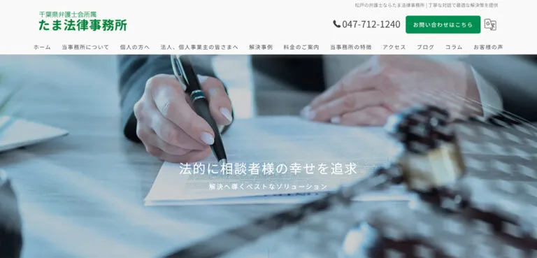 | たま法律事務所 | 千葉県松戸市松戸1834-15キュービック松戸ビル6階B | 050-5228-4620 | 土日祝 |