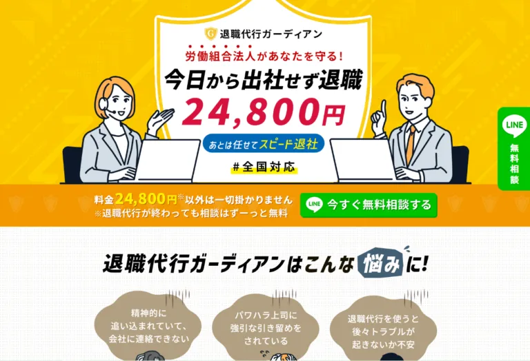 | 退職代行ガーディアン | ○ | 24,800円(税込) | 労働組合 |