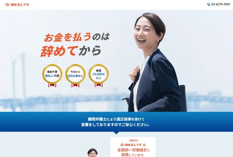 | 退職代行辞めるんです | ○ | 27,000円(税込)~ | 民間企業(労働組合提携) |