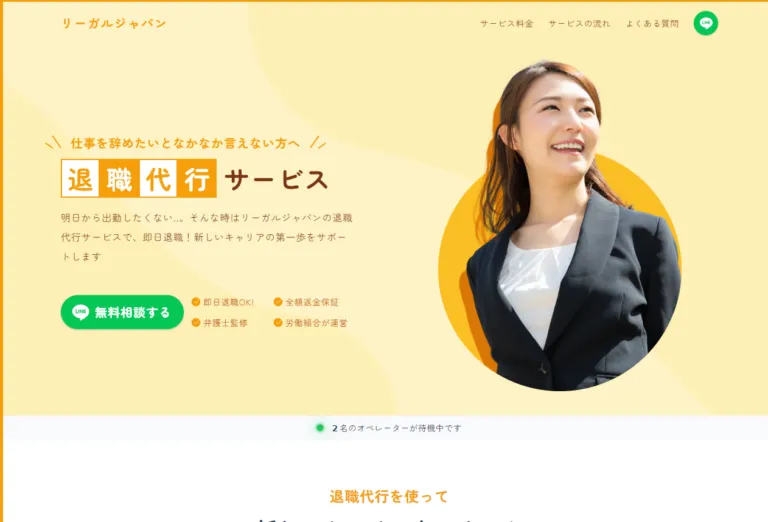 以前から仕事を辞めたいと思っていましたが、なかなか言い出せずにずるずると在職していました。そんな時、リーガルジャパンさんのホームページで退職代行サービスがあることを知り、思い切ってお願いしました。料金もリーズナブルで満足しています。