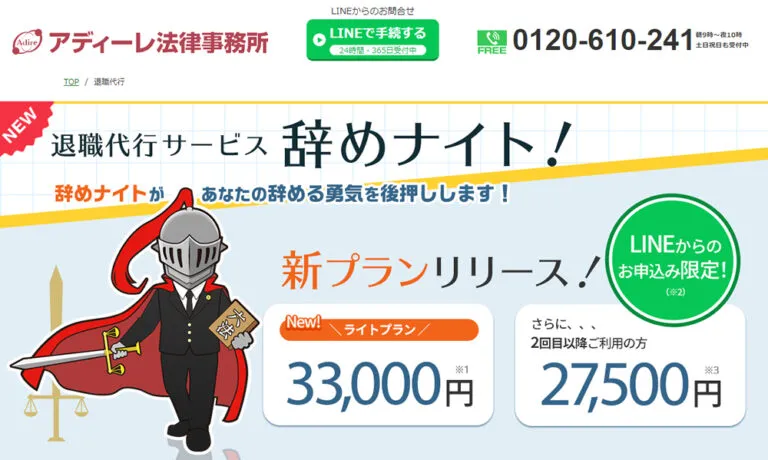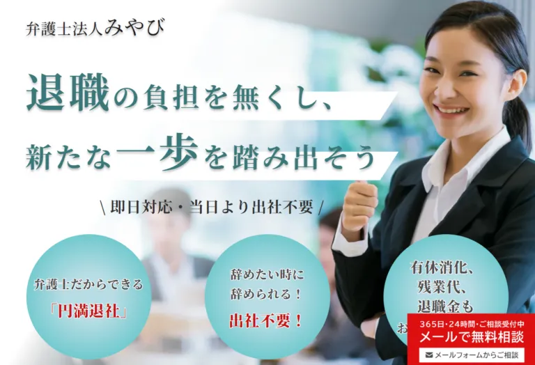 | みやびの退職代行 | ○ | 27,500円(税込)~ | 弁護士事務所 |